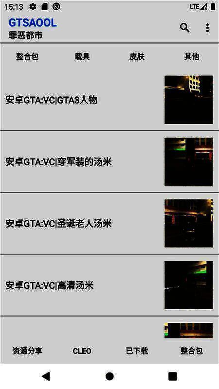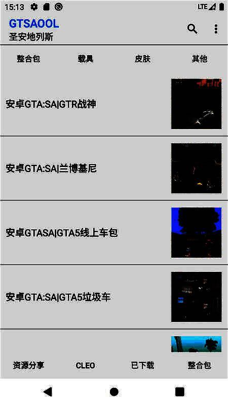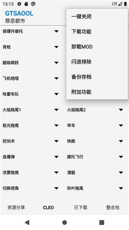 2、实时更新GTASA最新整合包,可在菜单(左上角三个点)处一键下载,使用整合包容易导致游戏闪退,闪退可试试菜单处一键关闭或闪退排除。