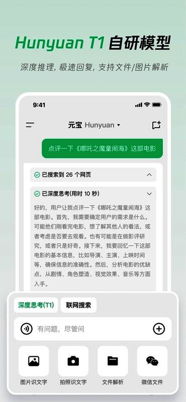 腾讯元宝官方正版是基于腾讯混合元素模型的智能辅助工具,为用户提供全方位的AI服务,包括AI搜索、AI摘要生成、AI写作等核心功能。这些功能旨在帮助用户快速获取信息,提取关键点并创建文本,提高工作效率和信息处理能力。app的用户界面设计简洁高效,保证了用户操作的便捷性,大大提升了用户的操作体验。通过智能算法,腾讯元宝可以精准识别用户的习惯和偏好,为用户提供个性化的信息推送,帮助用户更快地掌握和有效使用AI技术。感兴趣的朋友不要错过下载。