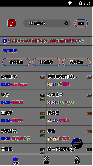 4. 只需输入关键字即可快速搜索所需的音乐或歌曲,提供快速搜索功能并支持多种流行音乐类别。