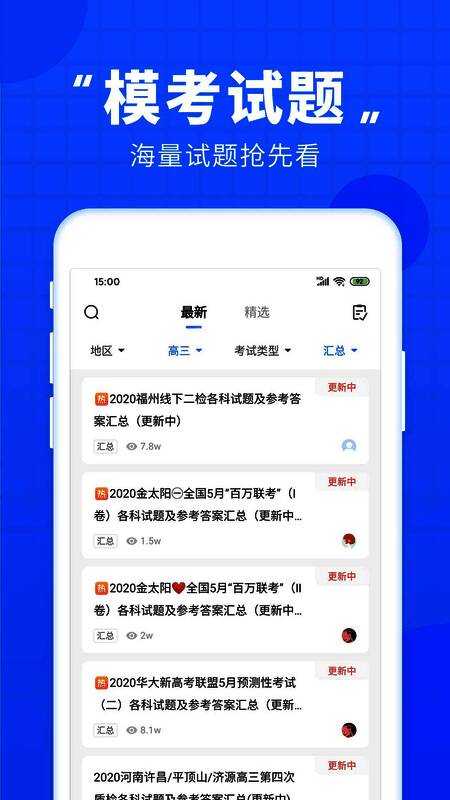 2、【模拟考试】 全国高考卷,北京卷,江苏卷,上海卷,浙江卷,天津卷,百校联考,A10联盟,省统考等海量高考模考答案更新快,答案在线!