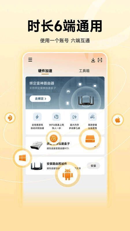 2、跨平台兼容性:支持Windows MacOS、NNPC、雷神App,主机、路由器满足多平台加速需求,覆盖所有场景,为玩家实现不同设备间的无缝切换。