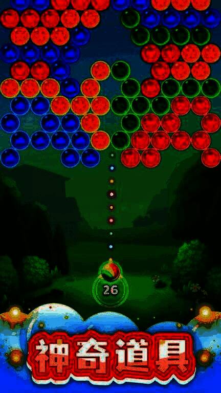 3、道具系统:游戏提供多种道具,如消除一定范围的泡泡、增加发射次数等,帮助玩家更轻松地通过难关;