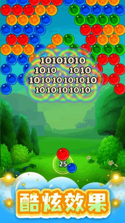 1、玩家通过触控屏幕发射泡泡,目标是将相同颜色的泡泡组合在一起,当三个或更多相同颜色的泡泡连接时,它们会消除并得分;