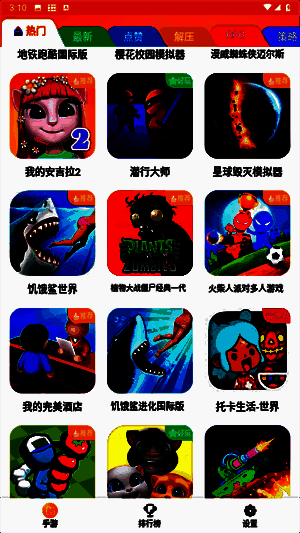 进入游戏平台,首页有各类游戏推荐,包括经营类、战斗类、跑酷类等等,在底栏还有最新火热游戏排行榜,榜单都是最近受欢迎的游戏