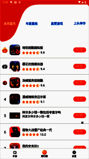 在排行榜一栏有本周最热、年度最热以及上头神作,玩家可以自由选择