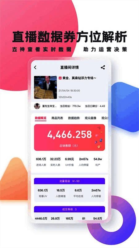 1、综合数据分析:提供详细的直播和短视频数据分析,包括观众数量、互动率、产品点击率等关键指标,帮助用户深入了解内容表现。
