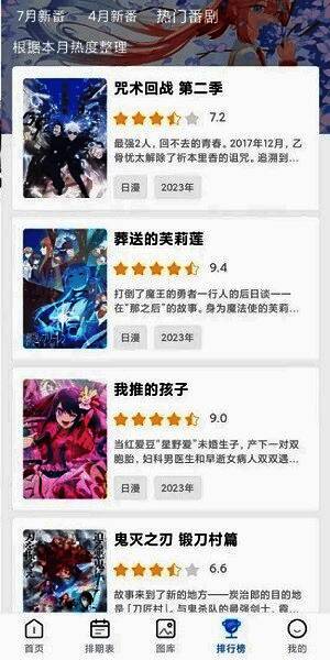排行榜查看:浏览应用内的排行榜,发现当前最热的动漫番剧。