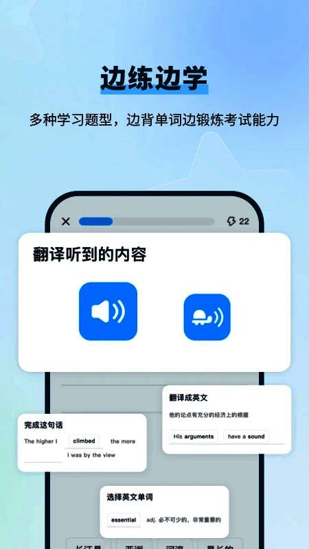 3、离线学习:支持离线学习功能,用户可下载词库和学习内容,随时随地学习,不受网络限制,方便用户在无网络环境下学习。