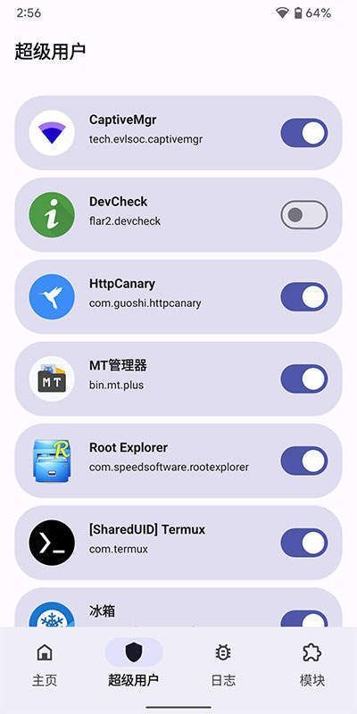 2.功能与Magisk官方版本没有太大区别,享有相同的Root权限管理功能。