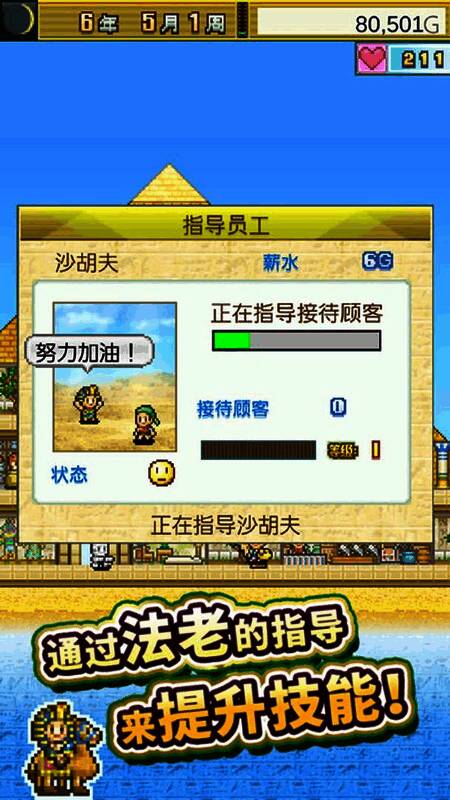 对于不同工作的员工可以进行指导,结束后员工的属性会得到针对性提升。