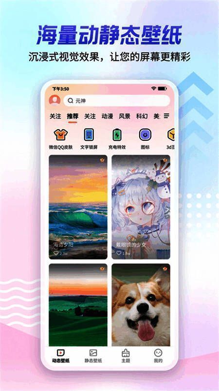1、丰富的壁纸资源:提供上万种高清壁纸供用户选择,涵盖自然风光、抽象艺术等多种壁纸主题;