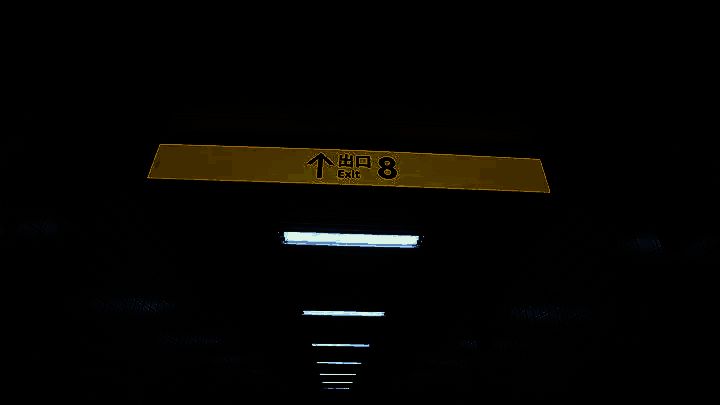 上方是排列整齐的白灯,有黄色的8号出口标识,标识后写着“地下广场”。