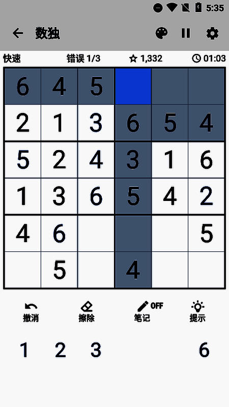 3、操作简单,界面友好:简洁的界面设计和流畅的操作体验,让每一位玩家都能轻松上手,享受数独解谜的乐趣;