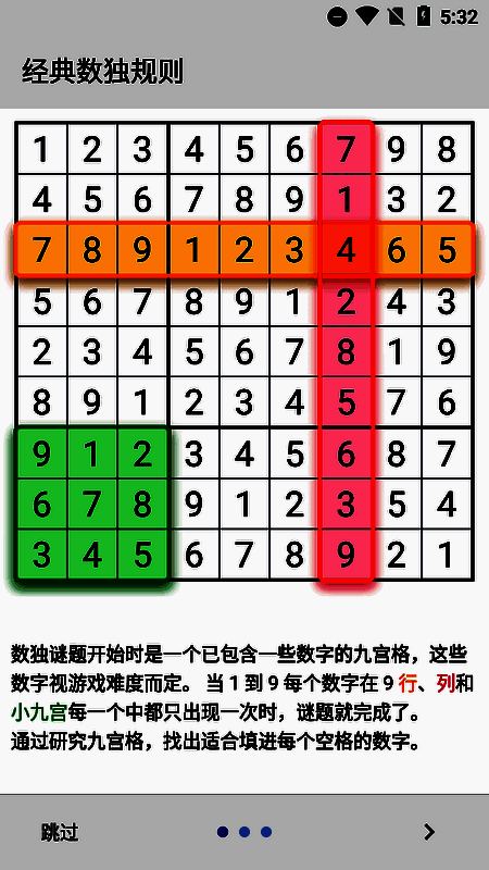 1、经典数独玩法:在9×9的网格中填入1至9的数字,确保每行、每列和每个3×3小格中的数字均不重复;