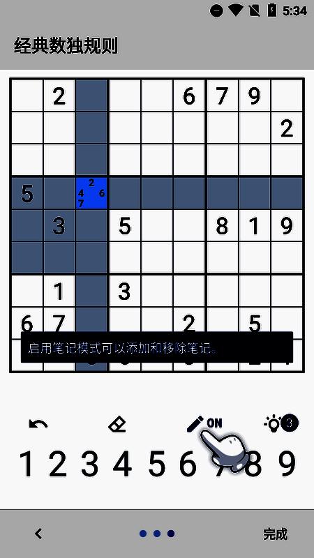 3、提示与检查功能:在遇到困难时,可以使用提示帮助进行推理,游戏还会检查玩家填写的数字是否符合数独规则;