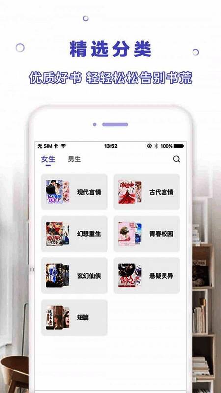 2、分类齐全满足需求:软件提供多种分类如男生小说、女生小说、热门榜等,满足用户不同的阅读需求;