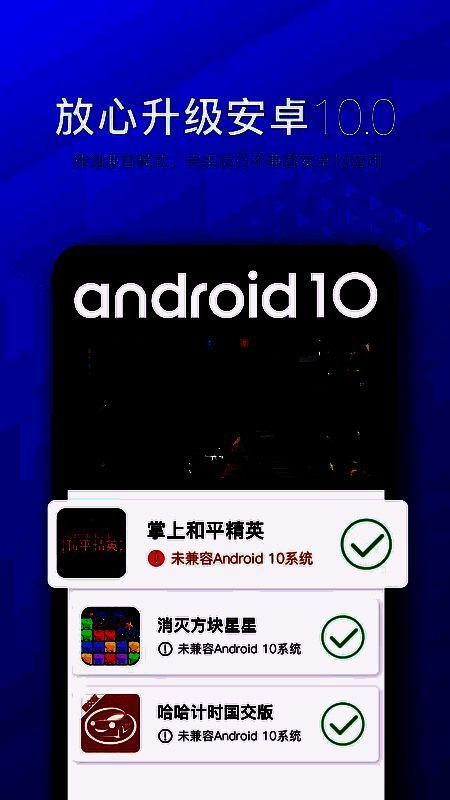3.安心升级,兼容模式,流畅运行与Android 10不兼容的应用程序。在Android 10手机上完美运行手持Peace Elite、同事应用程序、单人游戏等。