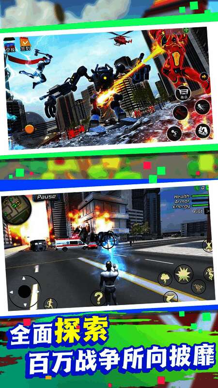 《钢铁都市守护者无广告版》这款游戏直接下载安装就可以畅玩了,3D画面效果玩起来更加的简单爽快。你可以控制各种超级英雄来进行清爽活泼的游戏体验,在这个广袤的城市里进行不断的巡逻,不断的消灭那些想要造成威胁和毁灭的敌人,整个游戏非常的过得去,更有不同的技能。它结合了角色扮演、射击战斗和开放世界探索等元素,为玩家提供了激烈而令人兴奋的游戏体验。