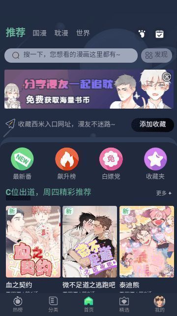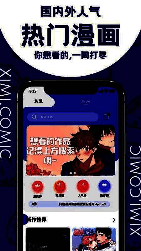 西米漫画 免费漫画在线阅读还提供各种独家原创漫画,让用户充分享受新鲜的阅读体验。应用界面简洁美观,操作方便。用户可以很容易地找到他们最喜欢的漫画并开始阅读。此外,该应用程序还支持离线下载和书签功能,允许用户随时随地自由阅读他们喜爱的漫画作品。无论您是想关注更受欢迎的漫画还是发现新作品,西米漫画 免费漫画在线阅读都是一个不容错过的选择。
