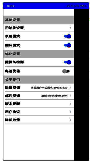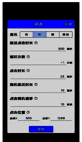 万能自动点击器 连点辅助app是一个屏幕宏执行器,可以在Android手机上自动循环和有序点击。你可以把它想象成手机上的一个按钮精灵,具有类似的功能。它可以帮助用户自动点击屏幕而无需生根,可视化操作,无需编写脚本,并且可以立即使用,使用起来非常方便。它可以实现自动点击、滑动、多点同时点击或滑动、记录手势循环操作、点击位置和设置参数保存,并实现类似于脚本精灵、自动精灵、眩晕生成器等功能。操作简单方便!您还可以自定义详细的组合设置:点击周期、触摸持续时间、执行频率、点击位置的随机距离和模拟滑动持续时间。