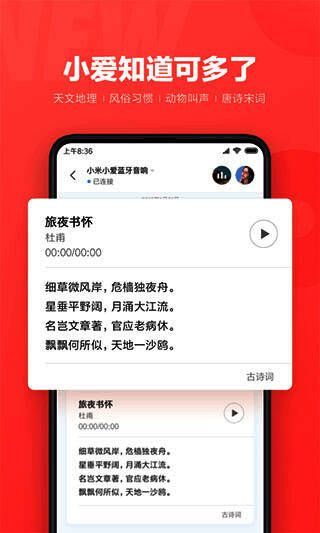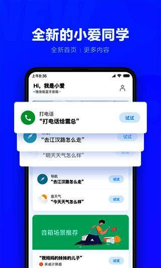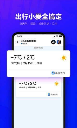 小爱同学 官方app安装入口是一款基于语音交互的人工智能助手。她可以帮助你轻松检查天气状况,询问时间和日期,高效无忧,大大提高效率。你也可以随时和小爱聊天,度过你的闲暇时光。连接蓝牙设备并启用远程控制,它是手机必不可少的个人助理。你可以查看天气、打电话、查看日历、播放音乐、玩控件、记笔记、打开应用程序,或者和某人调情,小爱!同时,该软件支持连续对话和语音唤醒。在最新版本中,小爱还添加了网易云音乐播放源,小艾快捷方式已完成所有型号的改编和发布。此外,最新版本的Xiaoai增加了实时公交信息语音查询和音质语音切换等功能。