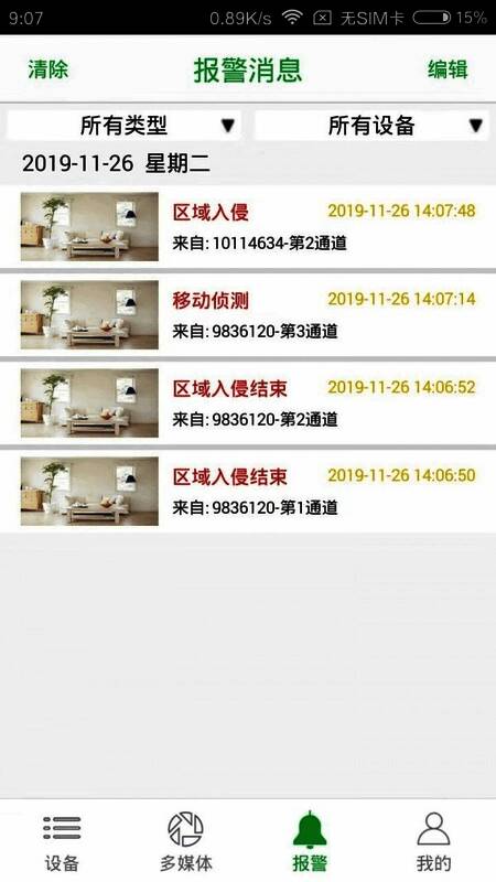5、切换到报警信息中,浏览报警信息的列表信息内容或点击清除。