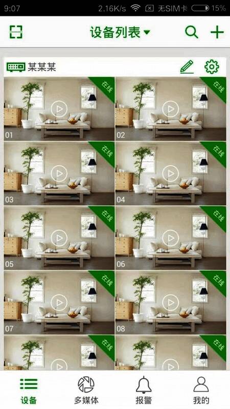 2、每台设备都有自己的名称和序列号,在设备列表列中可以看到所有设备的当前监控画面。