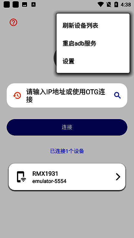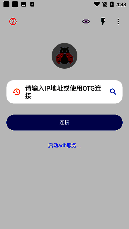 在手机上运行甲壳虫ADB软件,输入电视的IP地址进行连接。