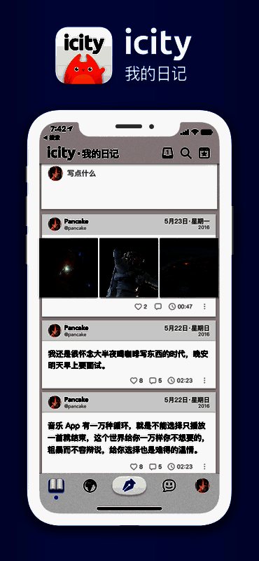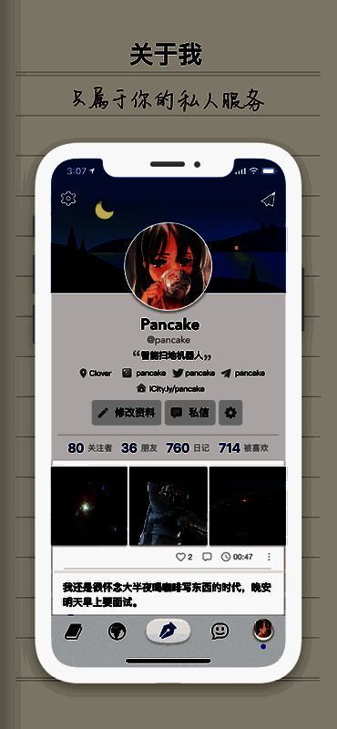 iCity以“专属网络”为核心理念,致力于为用户提供一个无需迎合、不必伪装的表达空间。应用采用端到端加密技术,确保每一篇日记内容仅你可见,即使通过手机号或邮箱注册,也不会泄露内容给第三方。你可以自由设置每篇日记的可见范围,真正做到“写给自己看”,彻底告别社交压力。