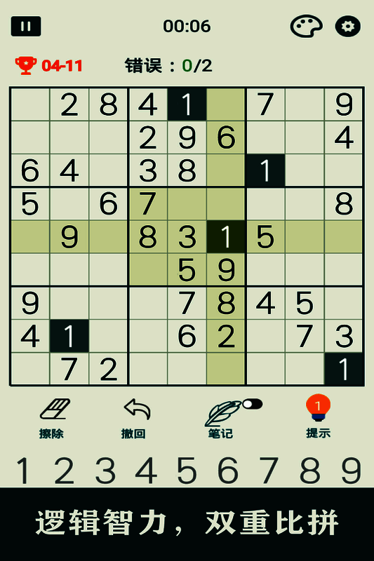 游戏基于标准数独规则——在81格的宫格中填入1-9不重复的数字,确保每行、每列及每个3×3宫格内均含全部数字。在此基础上,《开心数独 免费版》引入多样解谜机制,支持标记候选数、撤销操作与实时错误提示,降低新手门槛。同时设有初级、中级、大师三重难度体系,配合自动存档与暂停功能,让玩家可随时随地开启或继续一场智力较量。