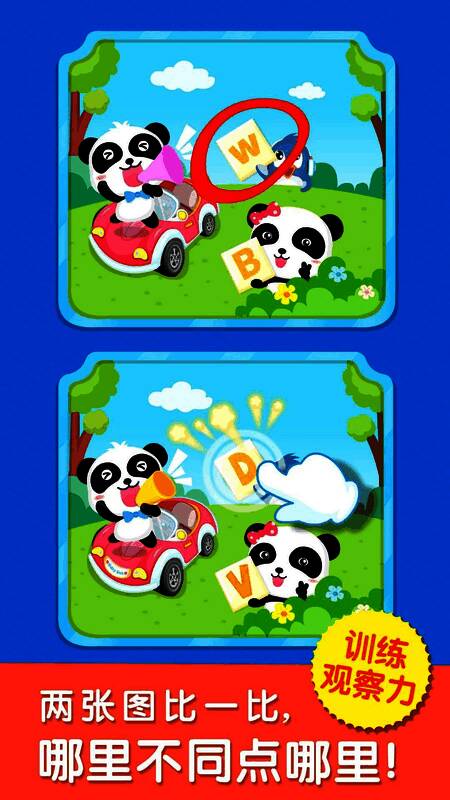 《宝宝来找茬》是一款专为全年龄段设计的休闲益智类找茬对决游戏,凭借清新可爱的画风与轻松解压的玩法广受玩家喜爱。游戏采用高清双图对比机制,玩家需在两幅看似相同的图片中迅速找出隐藏的差异点,挑战观察力与反应速度的极限。内置丰富关卡,涵盖自然风光、城市景观、童话场景等多种主题,搭配轻快背景音乐与灵动音效,营造沉浸式找茬体验。此外,游戏提供放大镜、提示等辅助道具,帮助玩家在卡关时顺利突破,边玩边提升专注力与视觉敏感度,是亲子互动、休闲减压的理想选择。