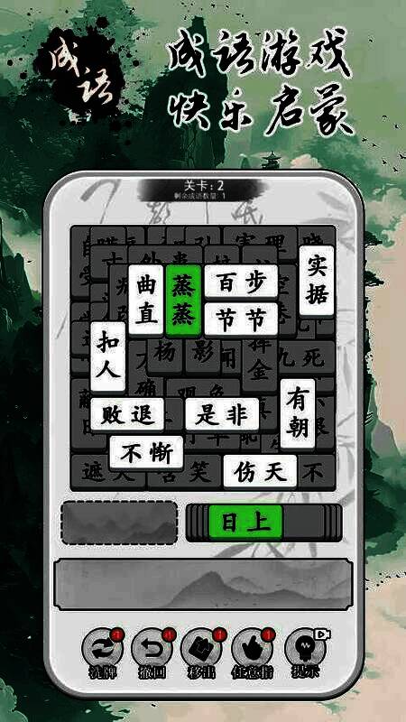 游戏采用“分散汉字+顺序消除”机制,每个关卡将目标成语的四个字随机打散在九宫格内,玩家需结合提示图片与语义逻辑,推理出正确成语并按顺序点击消除。随着关卡推进,题型逐步升级,加入谐音成语、反义提示、成语接龙等创新模式,极大提升解谜趣味性与思维挑战度。此外,每通过10关即可解锁“成语小讲堂”,深入解析通关成语的历史典故与使用场景。