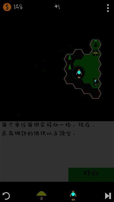 游戏构建了完整的兵种-资源-地形联动系统:1至4级兵种逐级克制,4级兵可击败同级单位,形成战术平衡;每名士兵持续消耗金币(最高-36/回合),迫使玩家精算军费。树木会自然蔓延或由阵亡单位生成,阻断经济产出,必须派遣单位清除。哨塔具备战略压制功能,高级哨塔虽消耗6金币/回合,但能封锁敌方扩张路径,配合兵种形成“经济封锁+军事突袭”组合技。