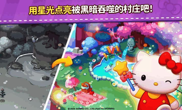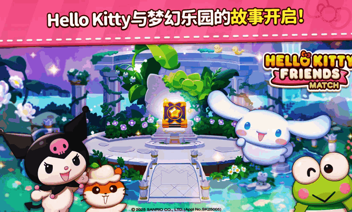 《凯蒂猫和好朋友们点点乐》是一款正版授权的三消益智手游,融合经典三丽鸥角色与轻松解压的消除玩法。玩家将携手Hello Kitty、My Melody、Kuromi、布丁狗等高人气角色,穿梭于童话般的梦幻世界,通过滑动连接三个或以上相同方块完成关卡目标。每通关一次即可获得金币与星星奖励,用于解锁可爱家具、装扮专属小屋,并逐步收集心仪角色。游戏不仅拥有数千个渐进式关卡,更融入角色技能、剧情探索与社交互动,打造集消除、养成、装饰于一体的沉浸式休闲体验。