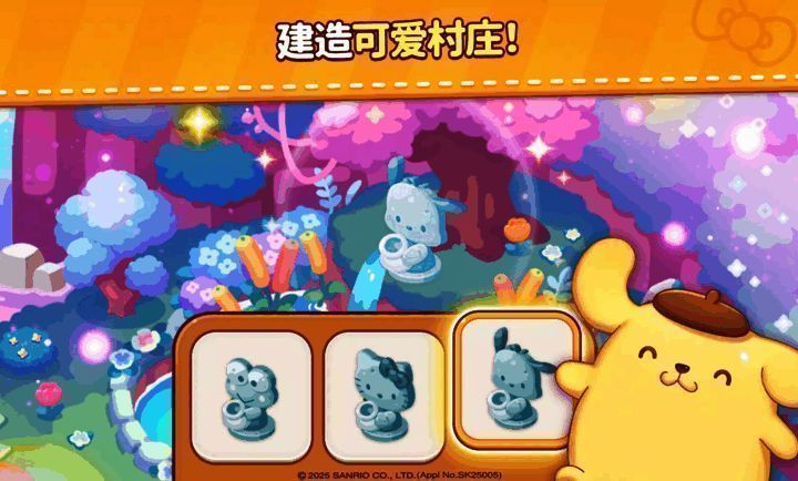 游戏获三丽鸥官方正版授权,Hello Kitty、美乐蒂、酷洛米、布丁狗等经典角色悉数登场,形象还原度达高清级别,唤醒童年回忆。每位角色不仅拥有专属立绘与剧情,还具备独特技能机制,如美乐蒂的“草莓权杖”可冻结时间,布丁狗的“蜂蜜罐”能转化障碍物,助力玩家突破高难关卡。此外,游戏定期联动节日主题与限定角色,持续丰富IP内容生态。