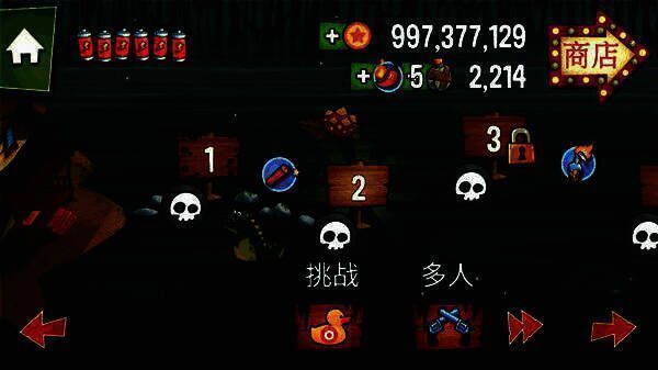 《沼泽派对》打破传统塔防边界,创新融合“塔防+射击”双机制。玩家不仅可布置陷阱延缓敌军推进,更需亲自操刀上阵,用点击式射击精准打击每一波来袭怪物。无论是用步枪点射飞碟,还是以火箭弹清屏群怪,操作直观却富有深度。动态天气系统进一步提升策略维度——暴雨淹没陷阱、雷电照亮黑夜,战场环境瞬息万变,考验玩家临场应变能力。