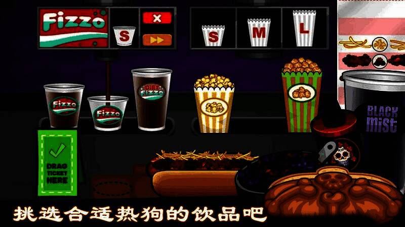 5、点击绿色箭头进入饮品区,选择杯型后制作饮料与薯条。