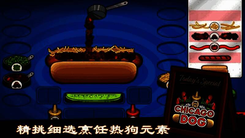 《老爹的热狗店 汉化版》是一款风靡全球的模拟经营手游,融合创意料理与店铺管理乐趣。玩家将化身热情似火的“老爹”,在繁华都市中打造专属热狗王国。从经典美式热狗到创意风味搭配,你需精准把控每一份订单,满足形形色色顾客的独特口味,赢取好评与小费,逐步将街边小摊升级为城市美食地标。目前该游戏汉化版本已全面适配中文界面,操作无障碍,适合各年龄段玩家轻松上手。