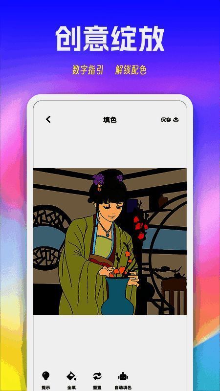 创意涂模式赋予用户完全的色彩主导权,支持自定义调色盘与智能区域识别填充技术,让每一笔都流畅自然。无论是为古风美人换装配色,还是为动漫角色设计新皮肤,都能即时预览效果。此外,APP集成手势缩放、撤销重做、对称绘图辅助等专业功能,操作响应延迟低于120ms,带来接近真实纸绘的手感体验。