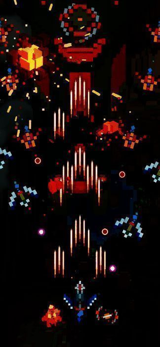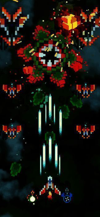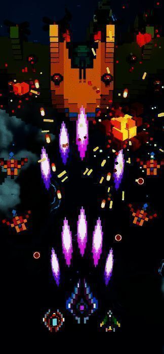 1、玩家驾驶高机动性像素战机,在多样化的天空地图中面对成群结队的敌机与弹幕攻击;