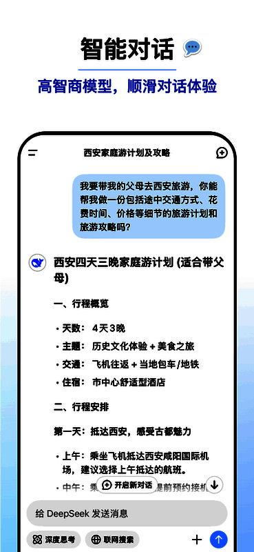 deepseekai智能助手下载是一个集成多种人工智能技术的智能平台,为用户提供高效便捷的人工智能服务体验。DeepSeek拥有先进的大模型算法,能够对海量互联网信息进行精准分析总结,为用户提供详细直观的答案。无论是日常问题还是专业挑战,DeepSeek都可以通过智能问答功能快速提供解决方案。Deepseek平台还支持多种人工智能工具,涵盖文本生成和信息检索等功能,以满足用户的多样化需求。