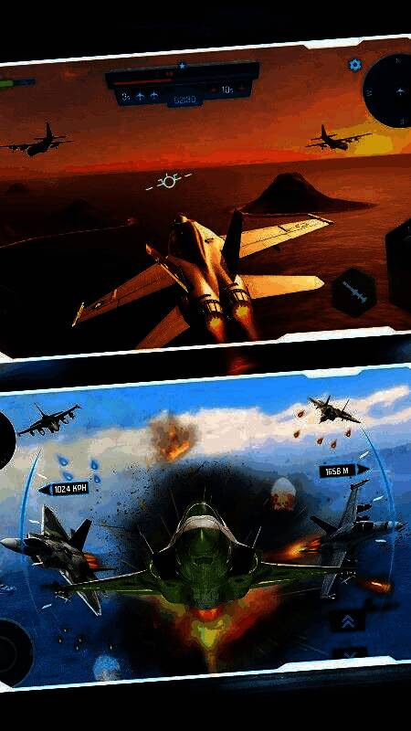 1、玩家将驾驶高速战机,在空中执行多种战斗与侦察任务,包括歼灭敌机、轰炸目标、护送友军等;