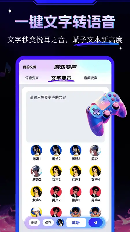专为游戏场景设计的实时变声功能,可在游戏过程中即时切换语音效果。文字转语音与音频变声功能同步升级,确保语音切换流畅自然,提升沉浸式游戏体验。