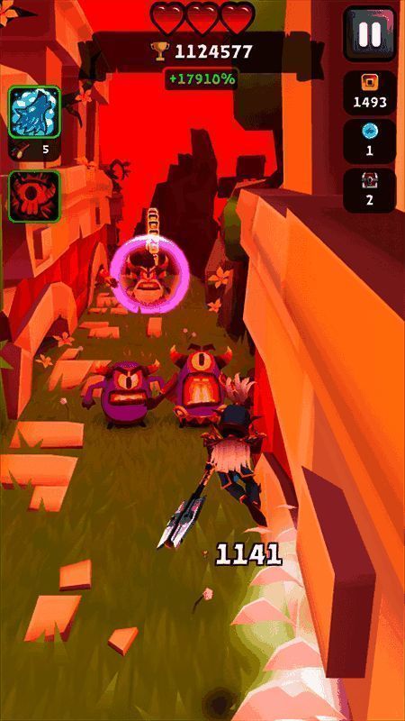 本作虽以跑酷为主线,但剧情设定颇具亮点:玩家扮演被选中的勇者,为拯救遭邪恶魔王侵蚀的魔法世界而踏上征途。途中不仅需灵活闪避机关陷阱,更要利用飞镖、旋风刃等特殊武器主动清除敌兵。部分隐藏关卡设有BOSS战机制,结合QTE操作增添战斗维度。整体叙事虽简洁,但配合场景变化与音乐烘托,仍营造出较强的剧情沉浸感,令人欲罢不能。