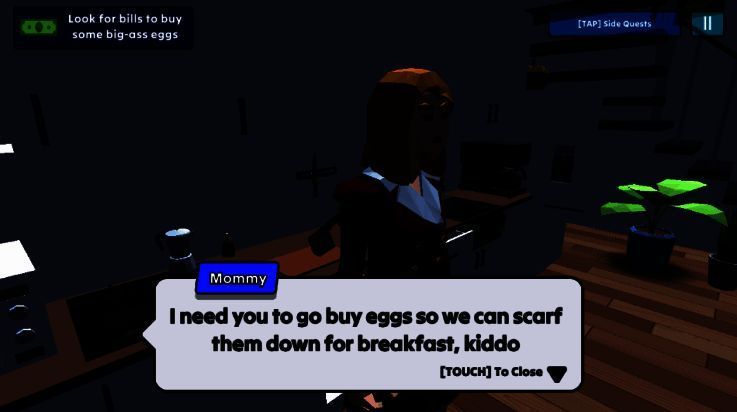 游戏初期跟随母亲指引出门买蛋即可触发主线。途中注意屏幕中标有“?”的物体,靠近点击即可接取任务。水果分类需拖拽至对应区域,考验眼力与速度;追鸡任务建议预判路线包抄围堵;驾驶模式推荐使用双指操作提升转向精度;军事基地探索时留意NPC对话中的隐含提示,往往藏着通关密码或彩蛋入口。善用存档点与背景音乐变化判断危险等级,是通关高阶关卡的关键技巧。