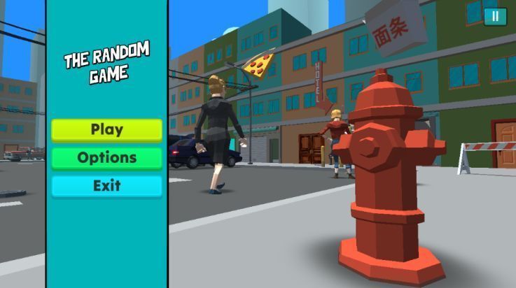 《随机游戏》采用时尚的低多边形(Low-Poly)美术风格,色彩明亮且富有艺术质感,营造出轻松愉悦的视觉氛围。搭配动态音效系统,每个场景均有专属背景音乐——商店内是轻快的爵士旋律,学校走廊回荡着隐约的铃声与脚步声,而进入军事基地后则转为紧张压抑的电子配乐,显著增强情境代入感。值得注意的是,游戏音频设计曾获IndieCade 2024音效创新提名,进一步提升了整体沉浸体验。