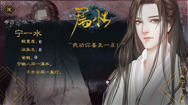 游戏通过四位男主展开多线叙事:孟西楼温润风趣,执掌江湖情报网,剧情如春水般绵长动人;兰折玉清冷孤傲,剑影映雪中坚守誓言,“执子之手”不只是浪漫承诺;江寄昀甜宠担当,东风寄情,恋爱互动高能频发;云盏则背负因果宿命,与宁一水的恩怨牵扯三生轮回,“众生畏果”篇章震撼人心。每位角色的性格刻画精准,立绘细节丰富,情感弧光完整,极大增强了剧情代入感。