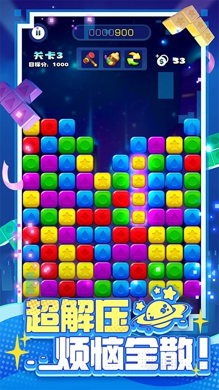 突破传统“无脑连点”逻辑,《消消之星除方块》深度植入淘汰策略系统:每关预设「核心目标链」(如清除指定颜色区域/激活隐藏机关),需玩家通过预判连锁路径规划最优交换顺序;新增「策略评分」机制——剩余步数越多、消除组合越复杂(L型/T型/十字型),额外加成系数越高。高手局中,单关最高策略分可达基础分的3.2倍,真正实现“玩得越深,赢得越爽”。