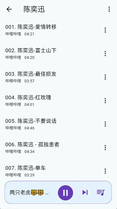 在搜索功能方面,哔哔音乐同样表现出色。用户只需打开搜索页,输入歌手名或关键词(如“周杰伦”),即可快速找到对应单曲或歌单合集。点击结果后,系统将弹出操作菜单,支持直接播放、下载、加入歌单等操作,极大提升了音乐获取效率。