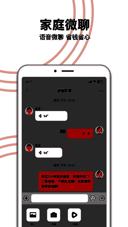 该应用支持**语音聊天功能**,让家长与孩子之间沟通更加便捷。通过微聊模块,可以实时发送语音信息,即使不在身边,也能及时了解孩子的状态,增强亲子互动。